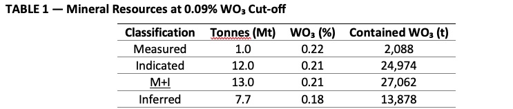 This means the measured and indicated resources already host 27,000 tonnes of WO3, which represents approximately 2.7 million mtu. The inferred resource category hosts approximately 1.4 million mtu. The resource remains open in multiple directions so it will be interesting to see how many tonnes can be added further down the road.