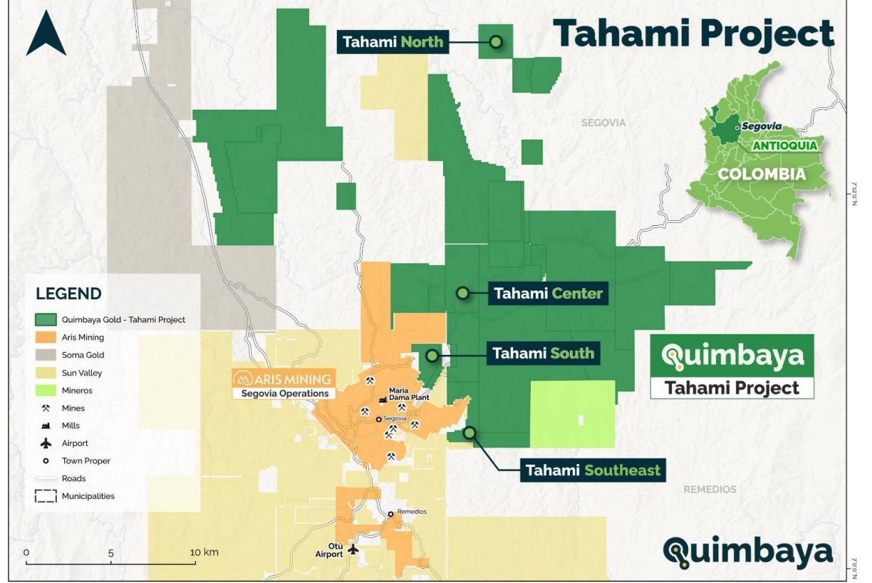 Quimbaya Gold (QIM.C) has released an update on its almost 25,000 hectare Tahami project in Colombia’s Segovia Gold District. The company plans to advance the asset using a three-pronged approach, highlighted in the bullet points here below.
