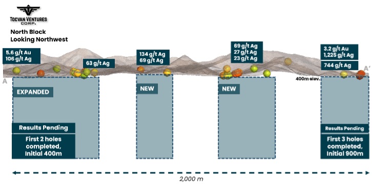Tocvan Ventures (TOC.C) has announced it has started its initial 2,000 meter drill program on the North Block of the Gran Pilar gold-silver project in Mexico’s Sonora state.