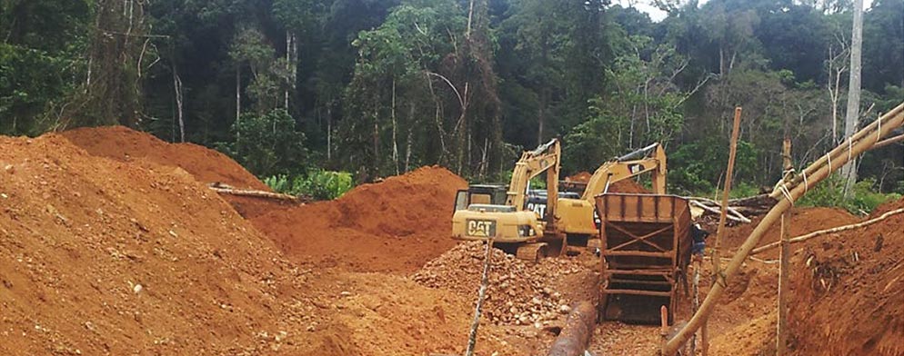 Alluvial-mining-at-the-Paul-Isnard-gold-project,-French-Guiana.