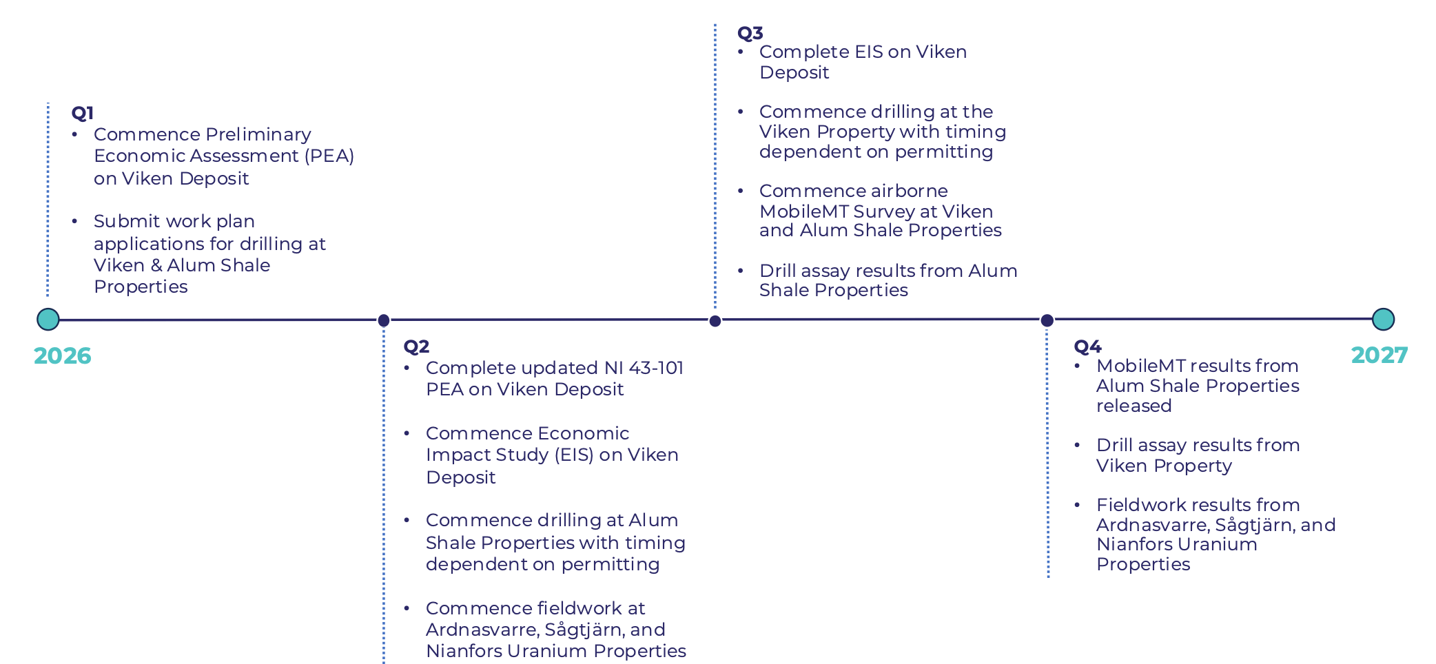 District has also engaged BDO Canada to work on an Economic Impact Study (EIS) which will highlight the economic and strategic benefits of the Viken project. The results of this study will only be published after the PEA, as it requires certain components from the economic study to be incorporated in the EIS.