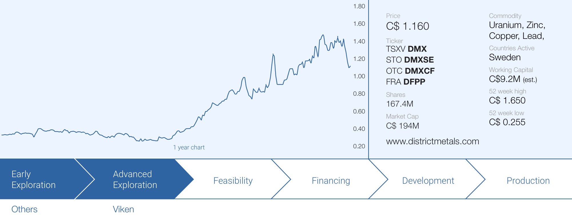 District Metals has an advanced-stage uranium asset in Sweden with a current NI43-101 compliant resource estimate. The next step for the company is to determine the economic viability of Viken, and we expect to see a Preliminary Economic Assessment in 2026.