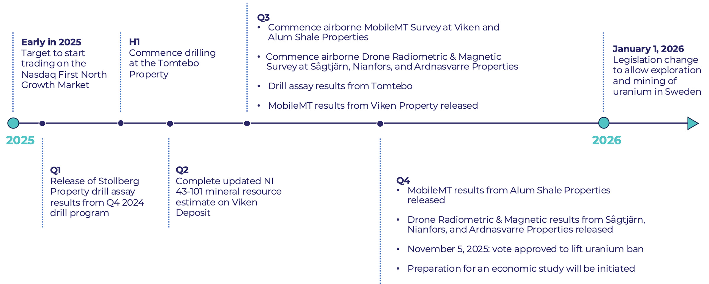 On January 1, 2026, the Swedish Government will execute changes to the Minerals Act and Environmental Code that will allow for exploration and mining of uranium.  Uranium will be added as a concession mineral for mineral licenses.