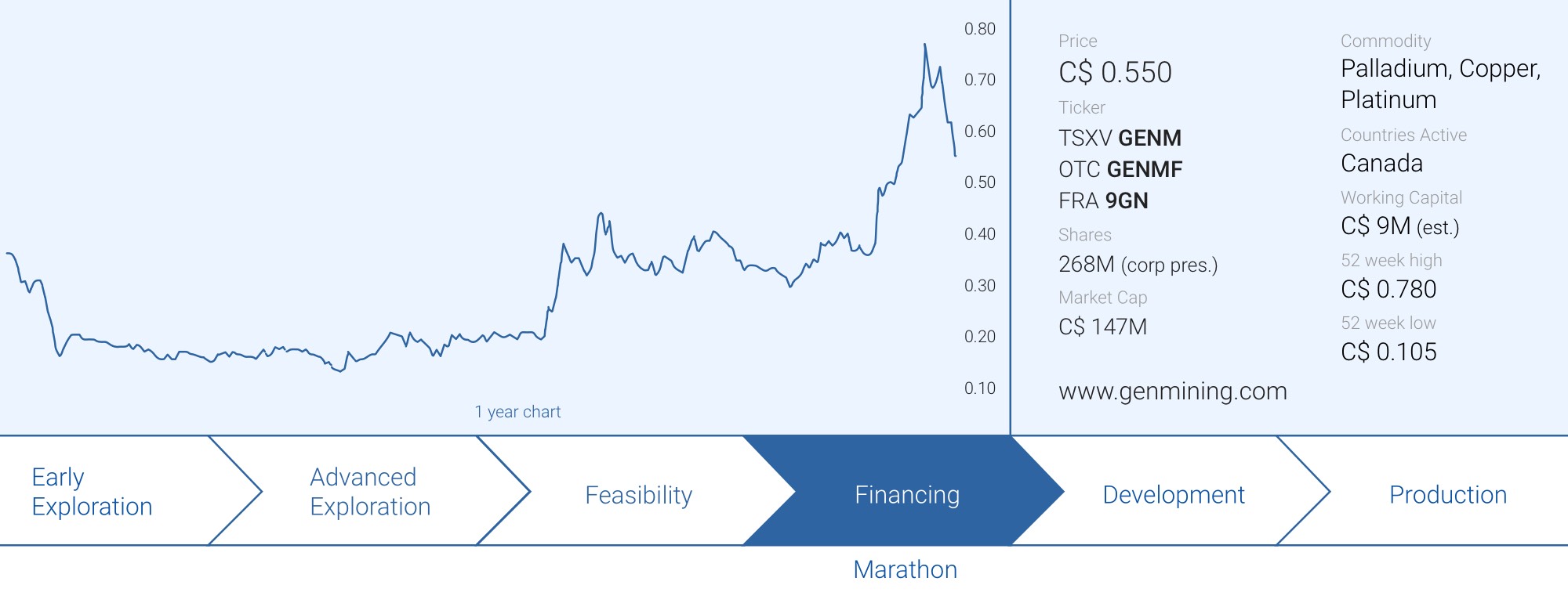 Earlier this year, Generation released an updated feasibility study on the Marathon project, and all important permits have been received by now. This means the Marathon copper-palladium project is the most advanced (and probably only) shovel-ready project in Ontario.