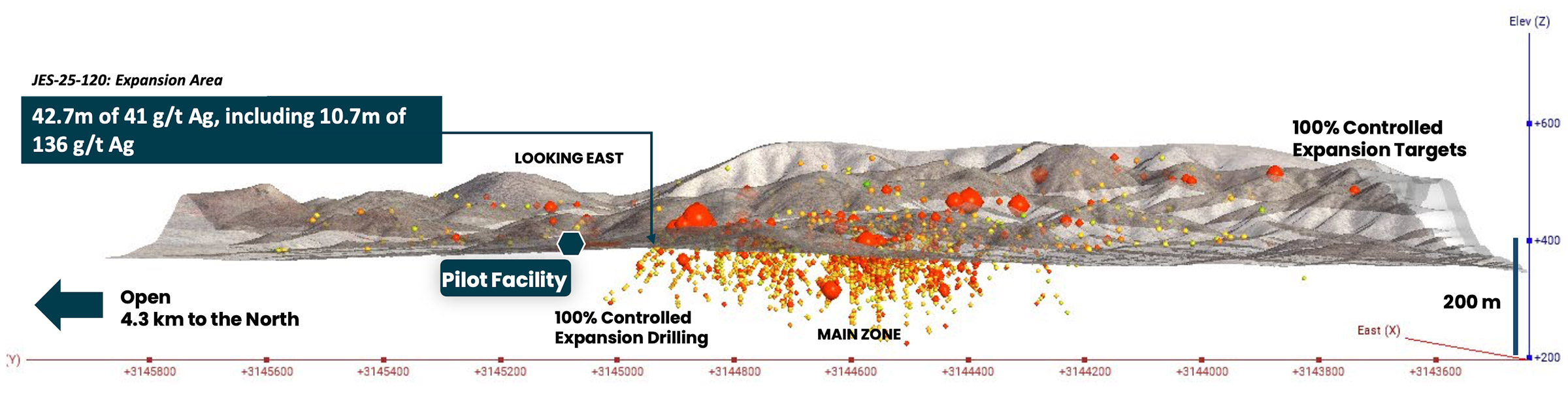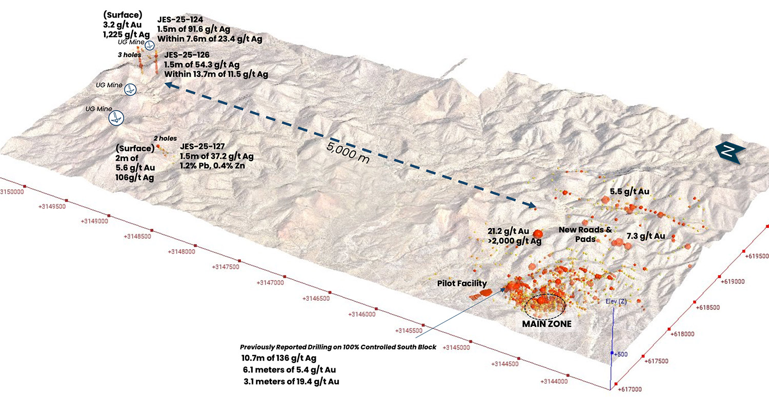 We’ve completed nine reverse-circulation holes across six new high-priority targets in the South Block, and the program is running exactly as planned. The goal is straightforward: expand the known mineralized footprint that extends directly from our historic Main Zone, test new structural and geochemical corridors with surface samples up to 21.2 g/t Au and over 2,000 g/t Ag, and generate the data needed for our maiden resource estimate later this year. This is all about de-risking the project while identifying additional high-grade feed for the pilot mine. We have up to 20,000 metres planned at Gran Pilar in 2026, and the early results will guide step-out and infill drilling. We are adding a second rig to the project next week.